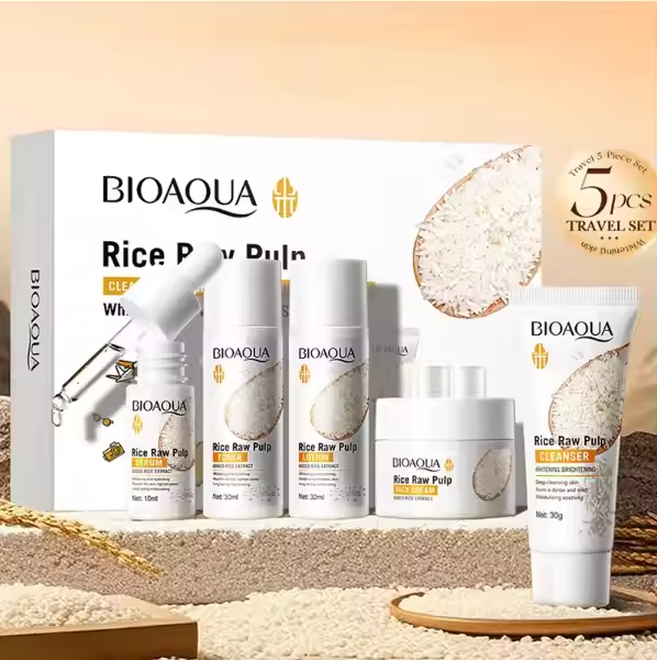 BIOAOUA Rice Pulp Whitening Travel 5-Piece Set 30g + 30ml + 30ml + 10ml + 15g